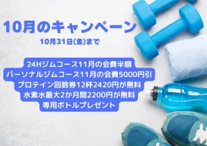 24Hジム・パーソナルジムBloomin’ 我孫子の10月の入会キャンペーンについてご案内します。